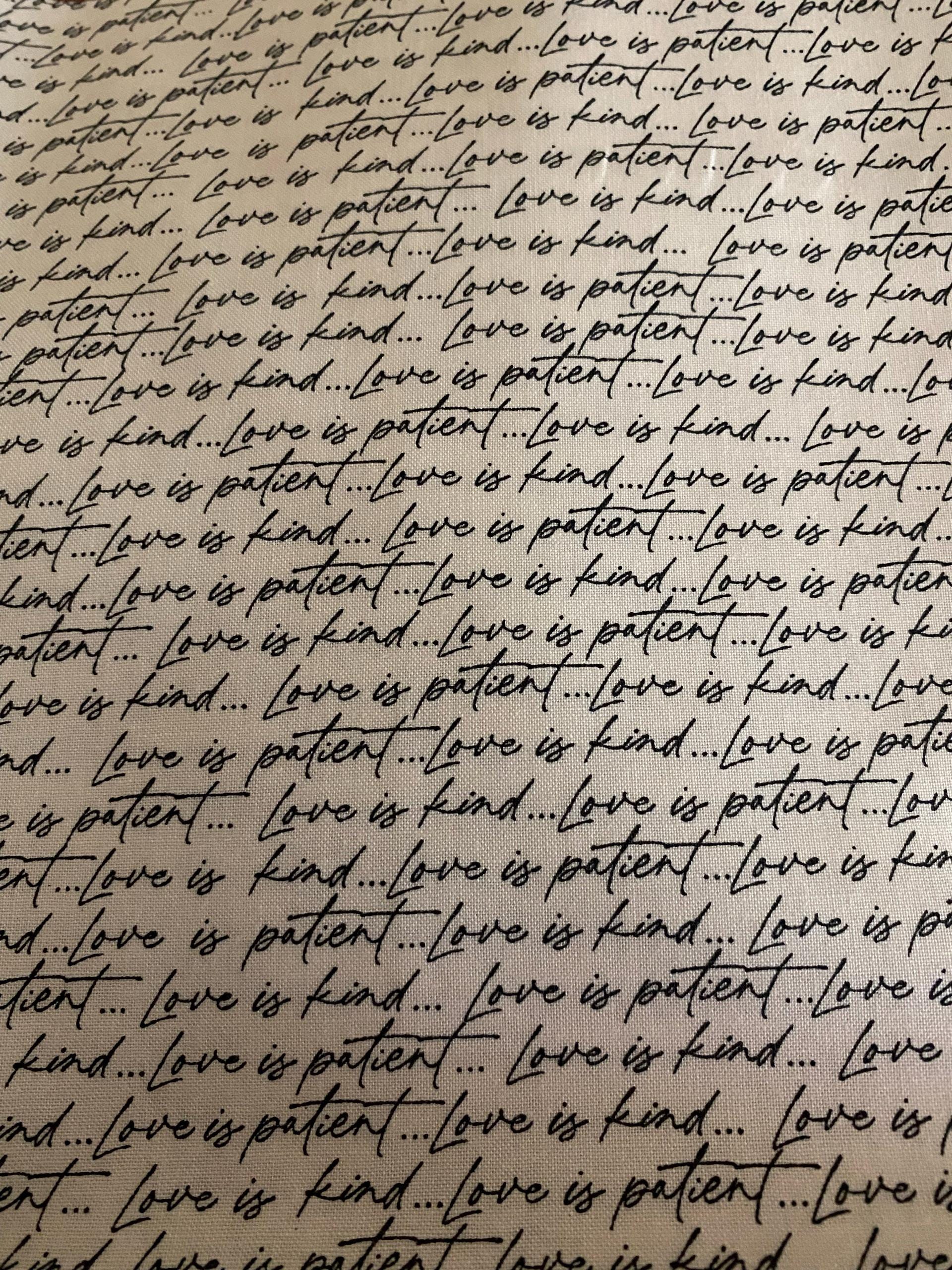 Flirt Text Script Love is Patient Fabric // Moda 55571 11 by the Half Yard Cream